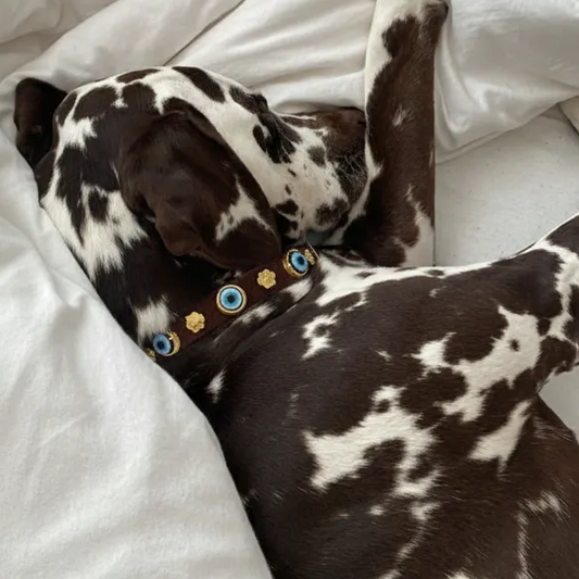 Suede Evil Eye Dog Collar | Cinnamon âïļ