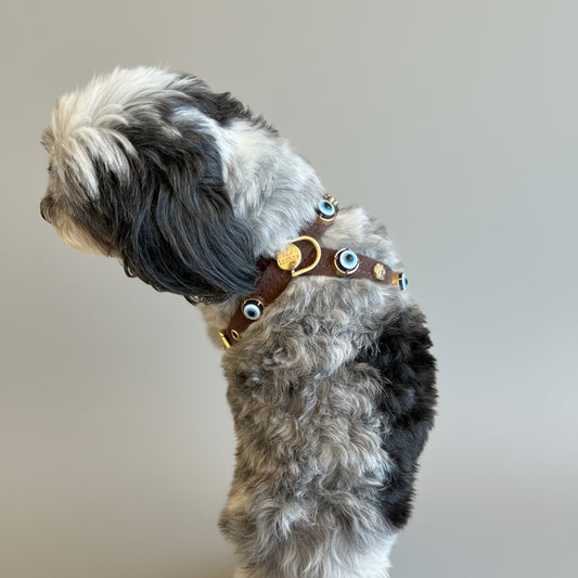 Suede Evil Eye Dog Harness | Dark Chocolate ð§ŋ